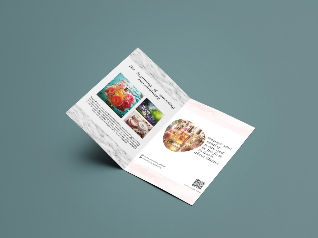 This catalog for DAENA is a creative project that showcases a unique collection of fragrances, diffusers, and skincare products, thoughtfully designed to evoke the essence of each season. I wanted to capture the spirit of summer, winter, autumn, and spring by connecting each fragrance with the feelings and visuals of these seasons—vibrant and refreshing for summer, warm and cozy for winter, rejuvenating for spring, and elegant for autumn. The catalog is complemented by a visually striking promotional card, designed to enhance the sensory experience and highlight the floral and seasonal connections through bold and captivating visuals.